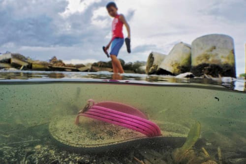 Muchos países carecen de infraestructura para evitar los residuos plásticos. Los niños juegan en esta costa, desbordada por estos residuos. Los residentes se enfrentan a una capa de plástico que incluye envoltorios viejos, bolsas arrugadas, botellas de agua desechadas y chanclas abandonadas.