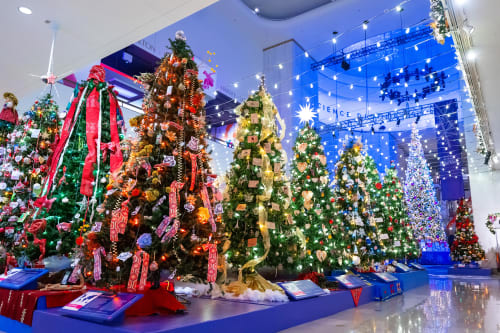 The Bonilla Foundation is honored to decorate the Puerto Rican tree year after year. Their tree is adorned with ornaments symbolic of the story of Christmas, including poinsettia flowers representing holy night, wrapped presents representing the gifts of the magi and many other items. Many families in Puerto Rico celebrate Dia de los Reyes or Three Kings Day, on Jan 6. Children put grass or straw in a box under their beds at night, hoping that the Magi's camels eat the grass in exchange for gifts. Decorating Team: Bonilla Foundation