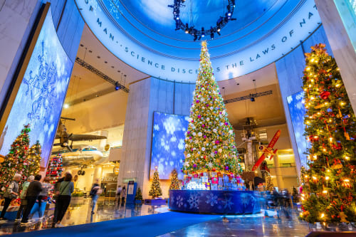 The 83rd annual Christmas Around the World and Holidays of Light features more than 50 trees and displays, each lovingly decorated by community volunteers who share family and cultural traditions drawing on their global heritage. Placed throughout the trees are displays representing international seasonal celebrations of light, like Hanukkah, Kwanzaa, Diwali and more. This holiday season, you can stroll through our indoor forest and light displays; take a family photo in front of the four-story Grand Tree in our Rotunda; enjoy specialty holiday treats at the Stan’s Donuts pop-up; and more. This beloved annual exhibit started in 1942 as one tree to represent unity during World War II and has since turned into an engaging winter wonderland. It’s a one-of-a-kind experience that brings a whole world of holiday joy under one roof.