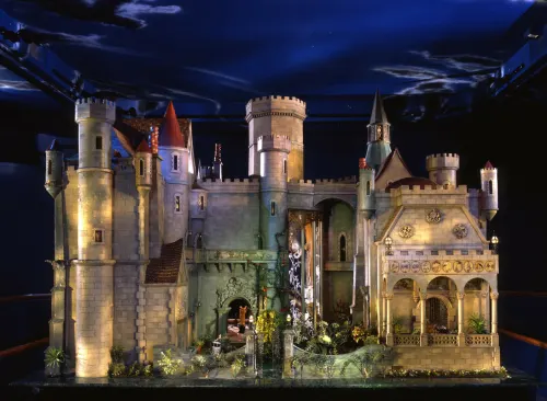 Horace Jackson, an architect and set designer who worked for First National Studios, created the floor plan and layout of the castle with the basic idea that “the architecture must have no sense of reality. We must invent a structure that is everybody's conception of an enchanted castle. Moore also enlisted the help of art director and interior designer Harold Grieve. Grieve had designed the interiors for Moore's actual mansion, so he was a natural to create the interiors of her fantasy castle. By 1935, approximately 100 people worked on the Fairy Castle. The price tag for this 8'7" x 8'2" x 7'7" foot palace, containing more than 1,500 miniatures, was nearly $500,000. All the hard work and expense of creating the Fairy Castle becomes even more impressive when one realizes that the entire structure can be broken down into 200 individual pieces. All of the rooms are modular units that can be packed into the drawers of specially designed shipping crates.