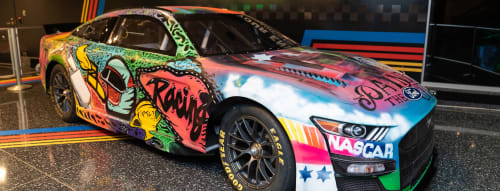 In celebration of the first-ever NASCAR Chicago Street Race, a Next Gen Ford Mustang stock car has been transformed into a mobile masterpiece hand-painted by an organization of talented local artists, Paint the City. The mural was designed to serve as a reflection of the rich history and culture of Chicago as well as to foster harmony and inclusivity within the community. The car started to undergo its major makeover during the weekend of the NASCAR Chicago Street Race in July 2023 and was completed during the 94th annual Bud Billiken Parade in August 2023. In addition to the community connection, the Next Gen race car was developed by NASCAR in collaboration with the brightest engineering minds in racing. The design of the car has given drivers greater control while putting an emphasis on race strategies, team personnel and setups. The NASCAR Next Gen 2023 Ford Mustang was on display in Entry Hall at Griffin MSI until June 2025.