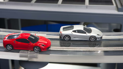 Solar power meets slot cars: Two photovoltaic (PV) panels capture incoming sunlight, converting it into power for a pair of cars racing around a track. Watch an animated PV cell turn sunlight into electricity, then control the amount of light hitting a solar panel to speed up or slow the car.