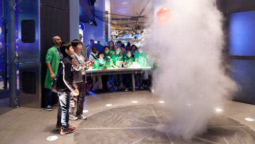 From palm trees in a typhoon to pinwheels on a blustery day, watching air in motion can be hypnotic. In its most powerful forms, wind can also devastate in a matter of moments. In the centerpiece of Science Storms, you'll be blown away by the tornado, a 40-foot Vortex of swirling air and vapor you can study and manipulate. Nearby, you can also create convection by heating the air inside large balloons and observe the effect with thermal cameras. Or team up with friends to ride along with storm chasers in a virtual race to intercept severe weather.