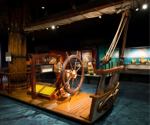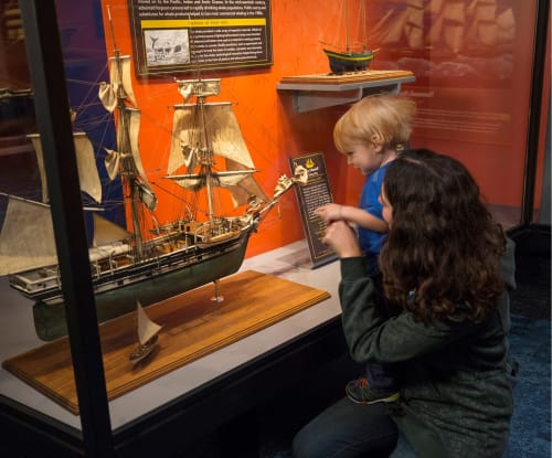 This fleet of nearly 50 model ships spans eras from Phoenician traders to clipper ships, refrigerated fruit and passenger boats to the Leviathan. Details of their workings and purpose come to life in the artistry and scale of the models. See a piece of the stone steps used by the first Pilgrims to board their ship to the New World. And, get hands-on aboard a nearly life-size replica of a tall ship's quarterdeck to literally learn the ropes.