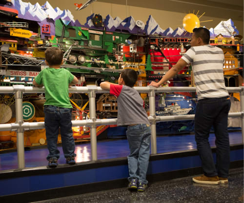 Over seven feet high and 15 feet wide, this massive pinball machine type known as a "flipper" contains surprises at every turn. The ball rolls through hotels, boats, ski lifts and even levitates a giant Toblerone bar. Kids love watching the frenetic yet easy-to-follow action. Tinkerers can appreciate the clever and upcycled engineering — the inventor made it out of salvaged scrap metal. And anyone can enjoy the one-of-a-kind show it puts on.