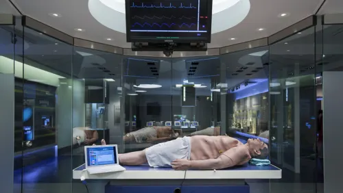 He could be the best actor in YOU! The Experience, but he'll never take a bow. It's iStan®, the Human Patient Simulator, a computerized mannequin designed to exhibit the realistic symptoms of medical crises. Students in facilitated Learning Lab sessions can play the roles of medical specialists, measuring his vital signs to diagnose problems, administering treatments and analyzing the results. The iStan sessions take place in the YOU! Lab, a flexible and functional educational space.