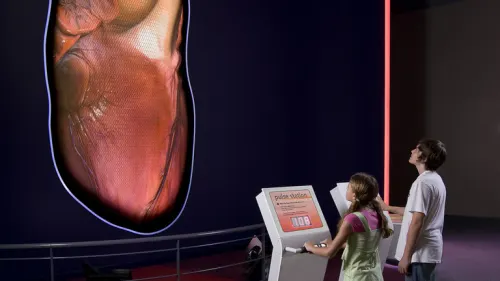 The biological and metaphorical importance of our hearts is woven into the Your Heart section of YOU! The Experience. It features the physical and emotional center of the entire exhibit: our stunning Giant Heart. Reinterpreted for the 21st century, the iconic Museum favorite returns as a 13-foot tall, three-dimensional animation showing multiple views of the heart's interior and exterior activity. Interact with the Giant Heart by sending it your pulse, and the heart will beat in time with your own.