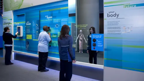 Explore the Your Future section of YOU! The Experience to discover and consider what's in store as you grow, develop and mature. Learn how the body continually renews itself over time, and the way in which your voice, vision and brain will change. It's also an opportunity to look back on your life thus far, and look ahead to what you hope to achieve. Featured Exhibits: