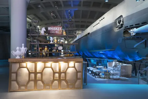 Dine beside a legendary WWII submarine in a dramatic two-story space for up to 350 guests.
